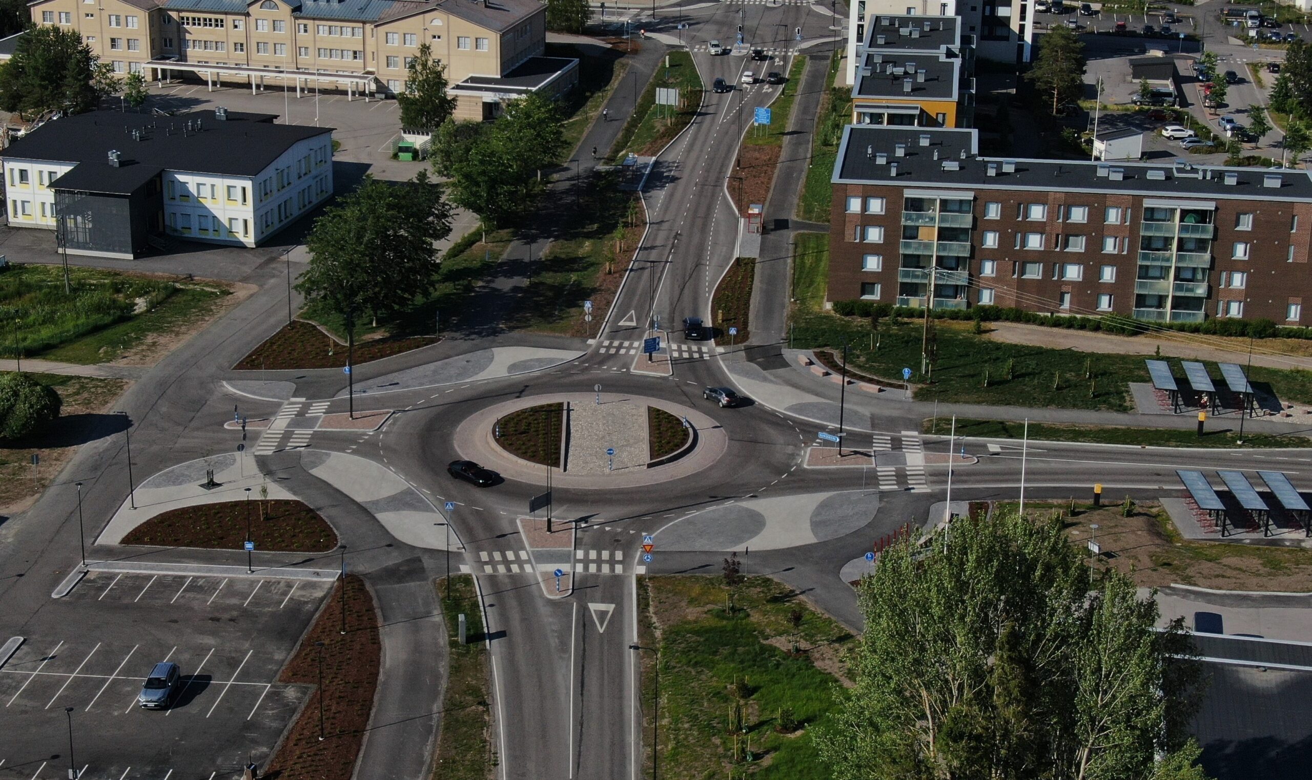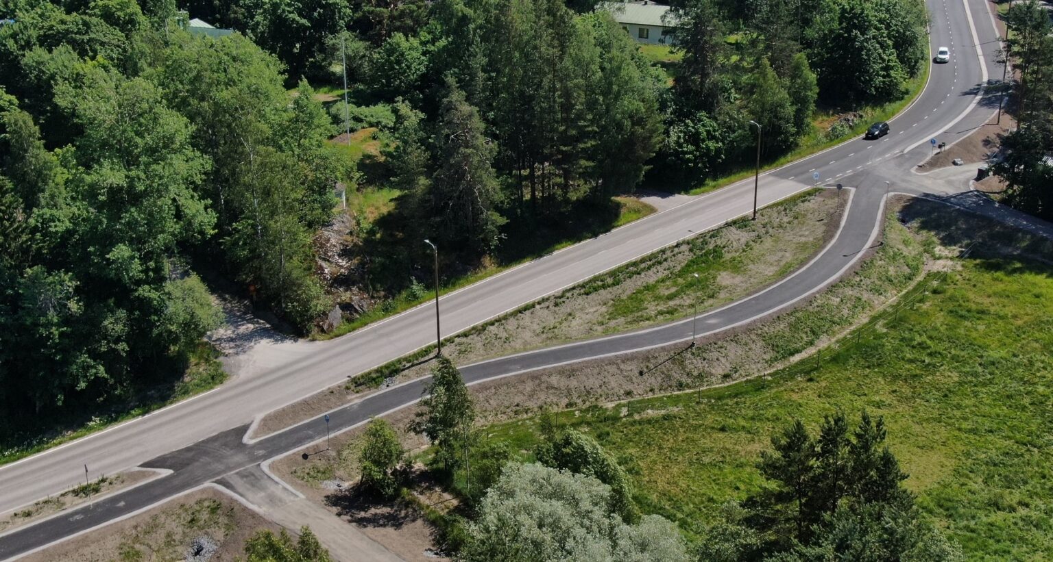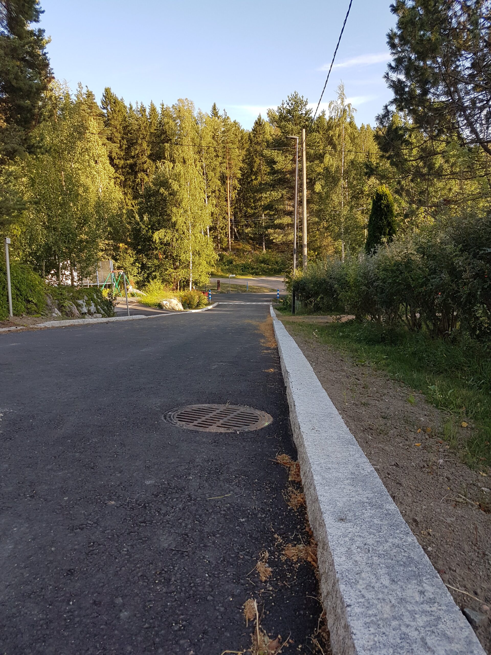 Slutdelen av Munkinmäentie och gång- och cykelvägen i Munkinniitty
